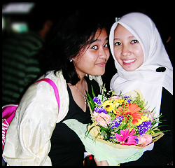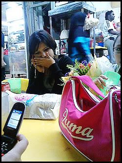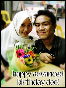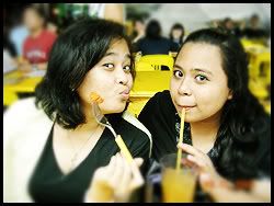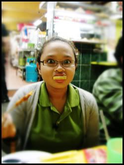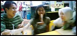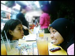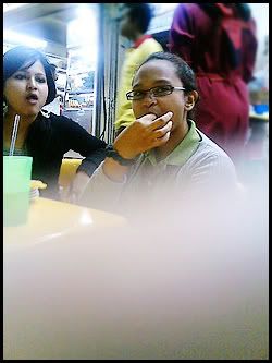 I love my Sexy26. Plus Syafiqqqqq la. :D Today was absolute fun ! I met up with Syafiq at school before we headed down to Interchange to get a cake for Dee and then to Tanah Merah Int. Then we waited for Aiman to fetch us at the Interchange when he could have just told us to go to the busstop. Haha. Over there, we talked to this random soccer TPJC dude who told us about the VS Match. Ayn and I met up with Izza and Maz inside Taqua - eh spelling? Then we both prayed while the others waited. So we finally got to Simpang Bedok and waited for Mal and Dee to come! Umi was in a rush to go home and she didn't even eat. She only got to eat like some stick of satays and met Dee for a while. Fizah ate jap and then left too. Dee was so shocked when she saw us, hahahaha. Yay, another birthday surprise completed ! Thanks to Mal and Maz who liased with each other (: We talked a whole lot and laughed a whole bunch about random stuff and we kept talking about depressing stuff (like SCHOOL UGH) and haha I had to keep reminding them to talk about happy stuff and darling Izza and Aiman just had to twist it around and go, "Oh I saw bunnies hopping and a pot of gold." Thanks eh korang. Dee got a whole bunch of presents from us ! YAY YAY. Hahahaha. And Fiq sort-of treated us ah cos he pay first and he very cincai with the bayar balik. Thanks Fiq ! Nisa SO kental ah during the whole time. Firstly, she was drinking her water and the menu just slapped her on the face, due to the wind! It was so hilarious that the makcik working there also laugh at her. HAHAHA. Then she makan so tak senonoh that her food flew HAHA. And we learnt that when you go Simpang Bedok, don't order Large but Medium. We couldn't finish the food (the girls la) and thanks to Man, Fiq and Mal, the fooooood finished! Nisa had to tapao some home lagik seh cos the food so banyaaak! It was so fun cos we met Deeee after so long, and she was so hyper ah when she saw us and it made me sooo happy (: Yay, I'm sucha sucker for happiness. If that makes sense. Anway, Syafiq irritating ah. But hahaha I getting used to it. But I got sooo tired towards the end of the night that I sat by myself in the bus - like loner + anti-social siaa. Okay so picturesss now ! (: